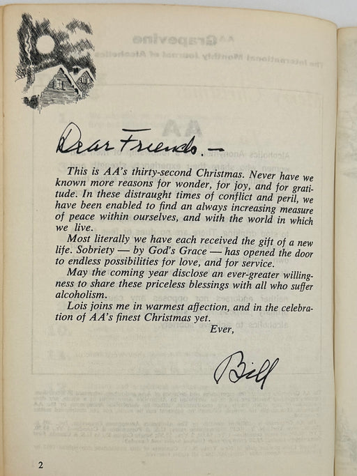 Original price $100 - Original price $100Original price$100$100 - $100Current price $100This is the December 1967 issue of the AA Grapevine. This issue includes “A Christmas Message from Bill”. Here you can read Bills Message: “Dear Fr...