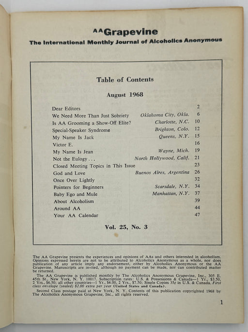 AA Grapevine from August 1968 - AA Elites