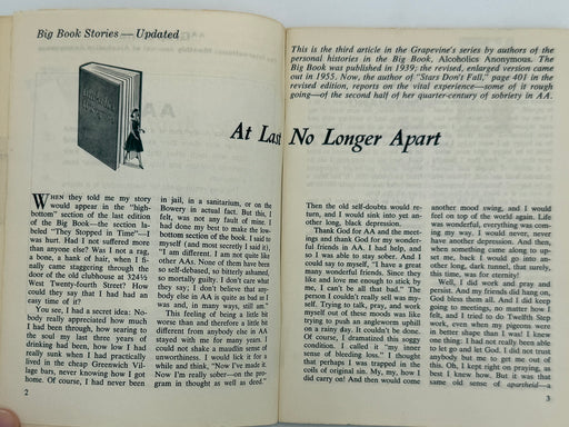 At the heart of the early Grapevines, then as now, were first-person stories. There were also news and notes on current happenings at the Central Office, plus reports of the explosion of new groups in North America and around the world. In addition to AA news, there were book reviews and magazine reprints and pieces written by non-AAs, including some well-known literary figures. Discussed were such burning topics of the day as the place of women in AA, returning veterans, and cross-addiction.