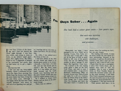 A monthly Journal devoted to those seeking further knowledge on the problem of alcoholism, in the hope that it may prove a unifying bond to all alcoholics everywhere. Individual opinions expressed here are not, necessarily, those of AA as a whole.
