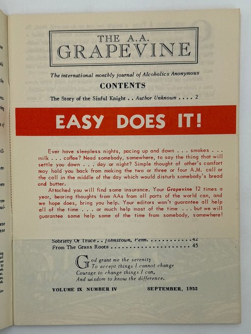 Original price $130 - Original price $130Original price$130$130 - $130Current price $130This is the September 1952 issue of the AA Grapevine featuring the articles “The Story of the Sinful Knight”, “Tradition Five by Bill”, and much mo...