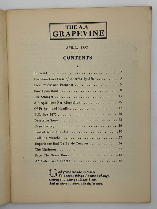 Original price $125 - Original price $125Original price$125$125 - $125Current price $125This is the April 1952, issue of the AA Grapevine. This issue features the first of a series of articles by Bill explaining the Twelve Traditions. ...