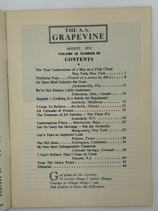 AA Grapevine from August 1952