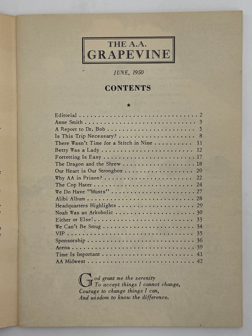 Original price $175 - Original price $175Original price$175$175 - $175Current price $175This is the June 1950, “Midwest Issue” of the AA Grapevine. This issue includes an article about Anne Smith who passed away in June 1949. Also inc...