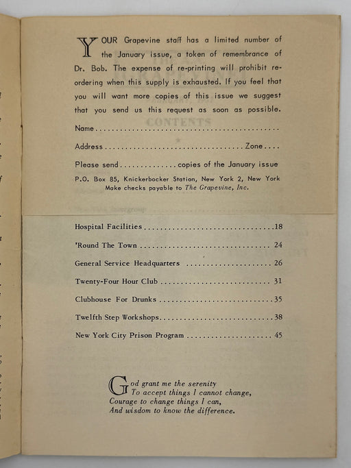 Original price $500 - Original price $500Original price$500$500 - $500Current price $500This is the January 1951, “Tribute to Dr. Bob” issue of the AA Grapevine. This issue features a complete dedication in the memory and life of servi...