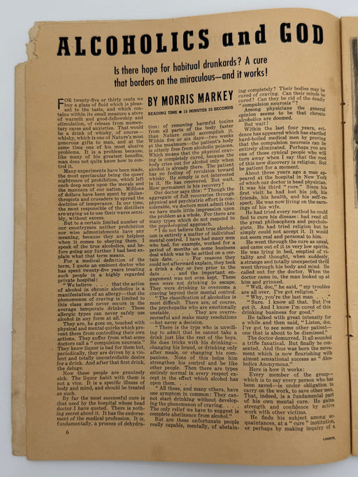 Liberty Magazine from September 1939 - Alcoholics and God article by Morris Markey