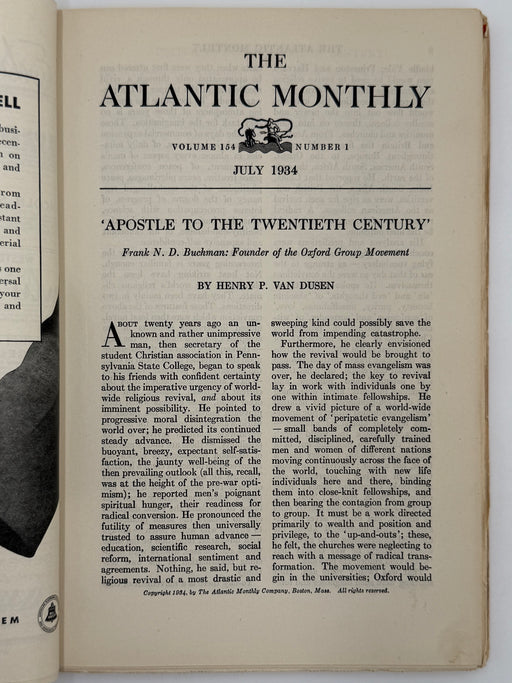 The Atlantic Monthly from July 1934 - 'APOSTLE TO THE TWENTIETH CENTURY' - Buchman