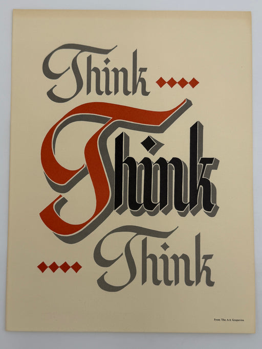 Original price $225 - Original price $225Original price$225$225 - $225Current price $225Title: Set of Two Original AA Slogan Posters – Think, Think, Think & But for the Grace of God Publisher: A.A. Grapevine Publication Date: Undat...