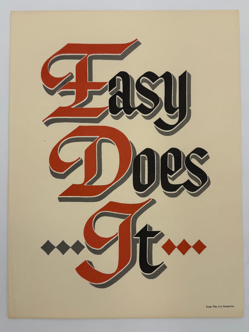 Original price $125 - Original price $125Original price$125$125 - $125Current price $125Title: Original AA Slogan Poster - Easy Does It Publisher: A.A. Grapevine Publication Date: Undated (circa mid-20th century) Dimensions: Approx. 9”...