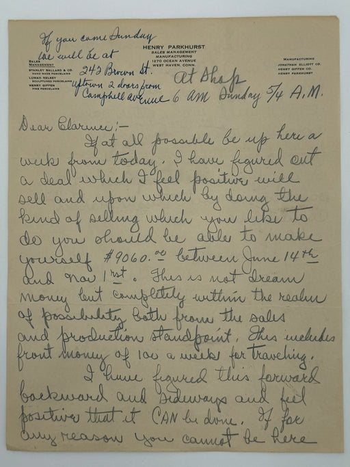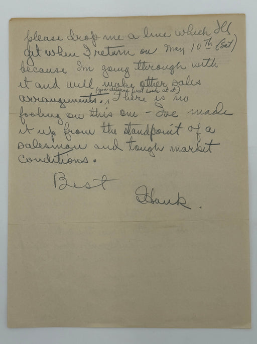 1947 Letter from Hank Parkhurst to Clarence Snyder