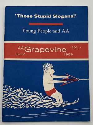 This is the July 1969 issue of the AA Grapevine. This issue has the headline articles “Those Stupid Slogans!”, “Young People and AA”, and much more!